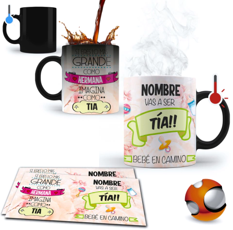 Taza negra que cuando viertes liquido caliente aparece el diseño de tu elección, sorprende con un lindo detalle a esa persona especial!