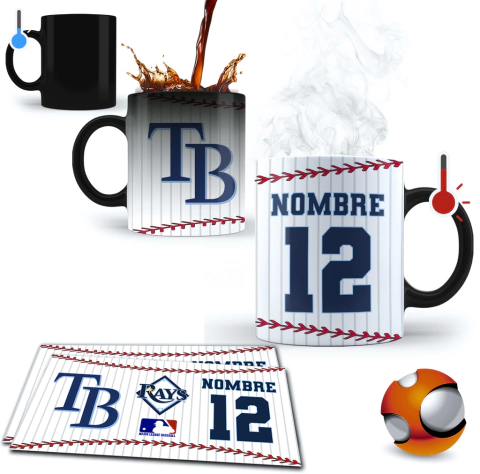 Taza Mágica de Cerámica Importada Premium Negra de 11oz con diseño de BEISBOL. Personalizada con nombre, como la imagen de esta publicación, envuelta en papel china.